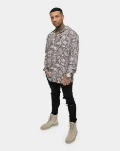 Saint Morta Paisley Skulls Long Sleeve Button Up Shirt Vintage Brown