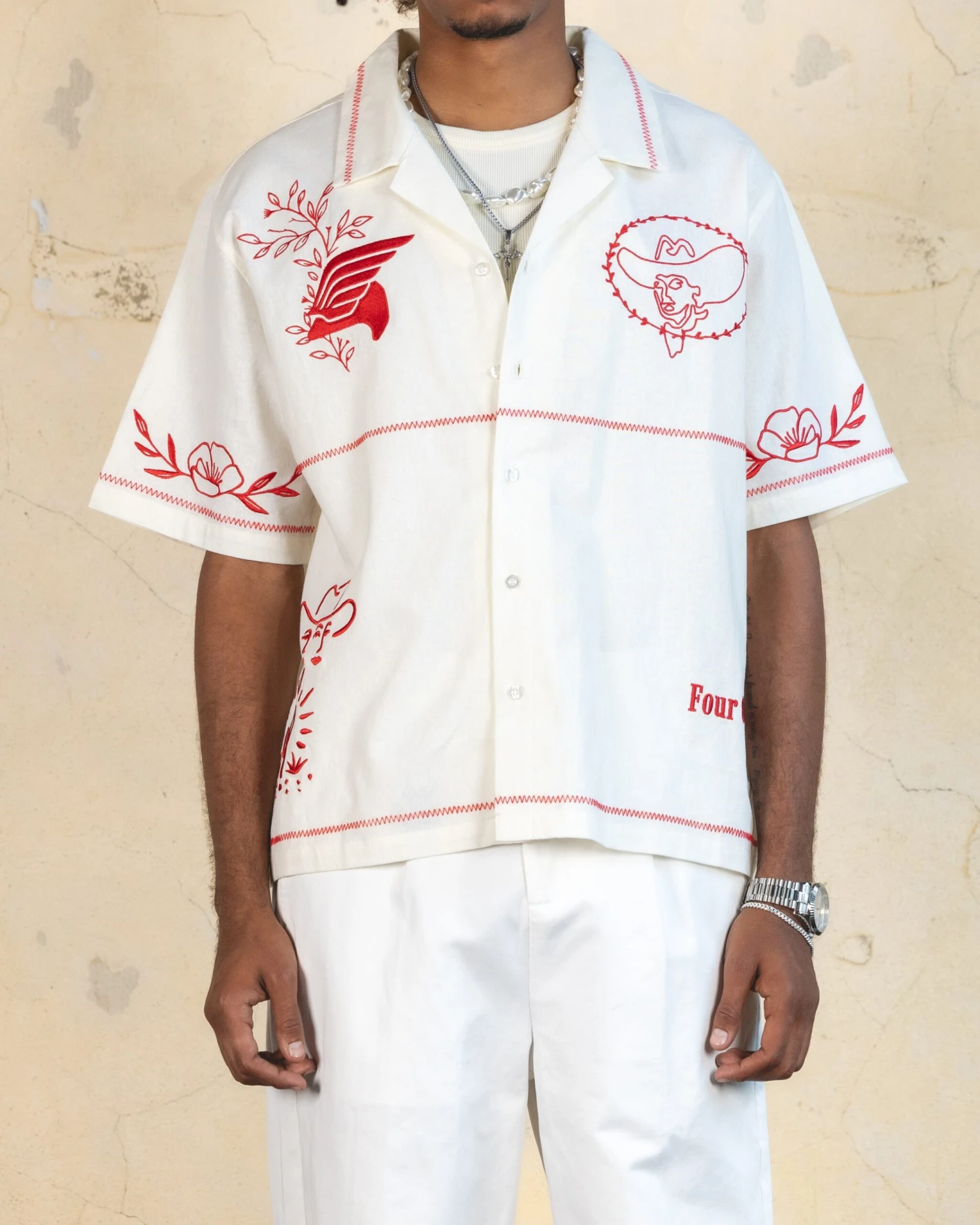 404 is delivering fire straight to your wardrobe this season. This button up features standout embroidered graphics and contrast stitching, dropped shoulders for an off-duty look and a box fit that makes this piece effortlessly flattering. Be quick and cop yours today at Culture Kings.