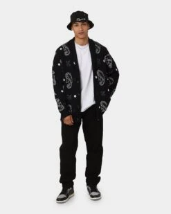 The Bandana Distressed Cardigan is the perfect cosy ‘fit for cooler weather. The knitted construction features raw distressing on the cuffs and hem, with a button up design and a classic bandana design to finish.