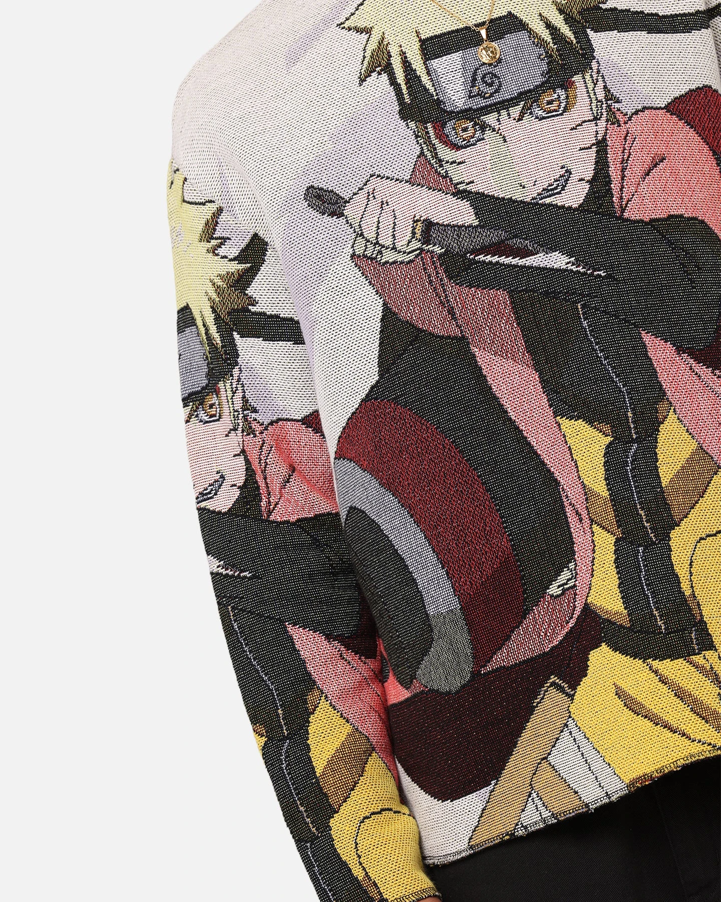 Become the Hokage of your own village with the Goat Crew X Naruto collaboration. The Shippuden Tapestry Sweater features legendary all-over graphics of Naruto and Sasuke fro the iconic Shippuden series on an incredibly soft, knitted cotton construction and finished off with dropped shoulders to keep the streetwear vibes going. Be sure to secure yours today at Culture Kings.