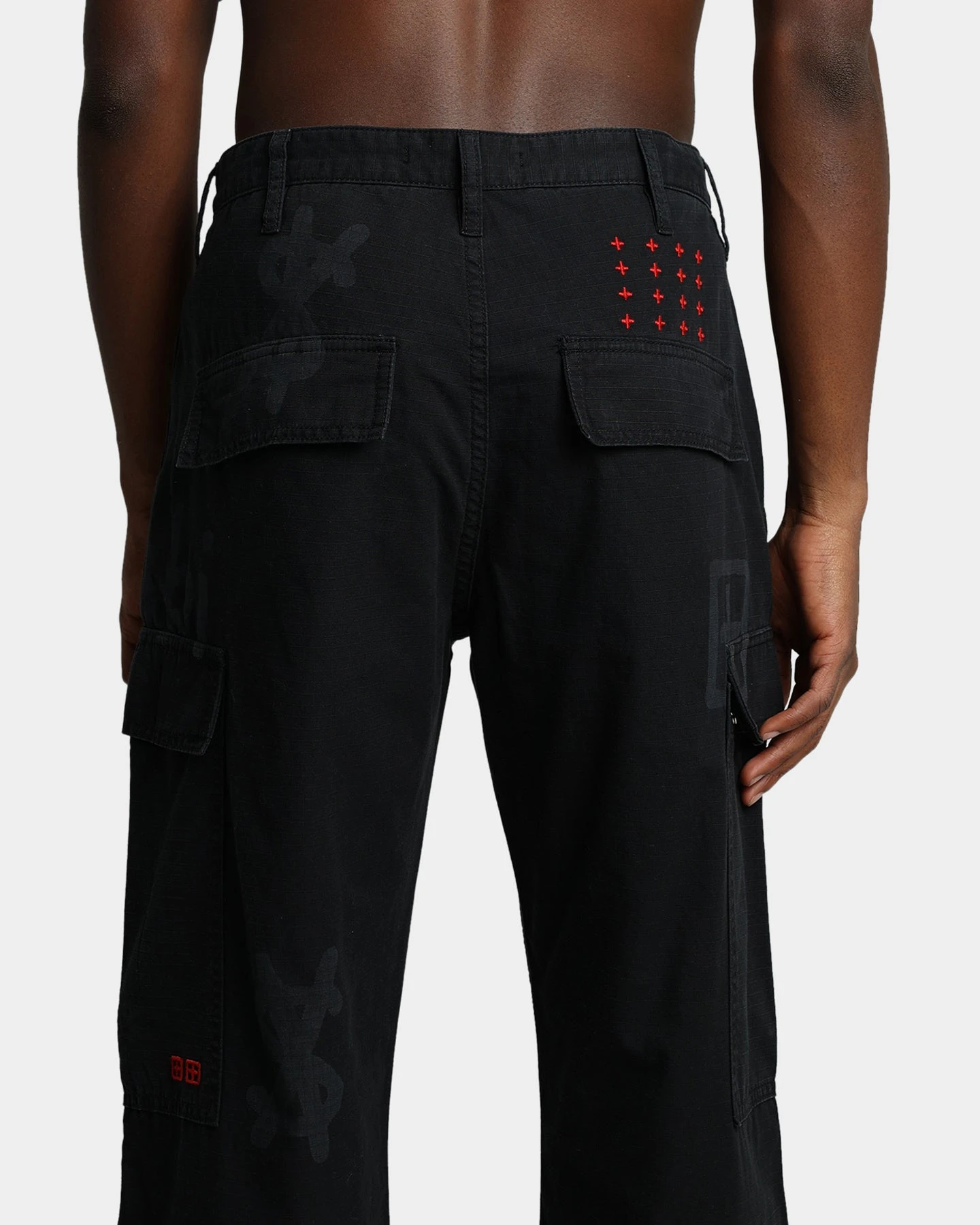 The Fugitive Cargo Pant Kash Box is a loose-fit cargo pant decked out in pockets, making these your go-to for a fire look. This style is made from a cotton ripstop fabric with a laser printed t-box artwork scattered across the leg and detailed with tucks at the knees and drawstrings at the ankles. Signed off with 4×4 cross embroidery on the back and a Ksubi t-box print on the leg to mark your love of the brand. Cop yours today.