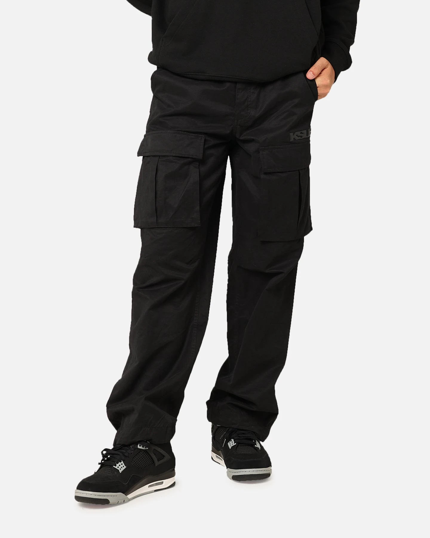 The Fugitive Cargo Pants are detailed with back 4×4 cross embroidery and the Ksubi t-box print. This style is constructed from cotton ripstop fabric finished with an aged wash. It’s designed as a loose fit pant featuring six pockets including two side cargo pockets, knee tucks and drawstrings at the hems. Style meets utility in this pair, cop them today before stock runs out at Culture Kings.