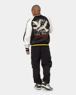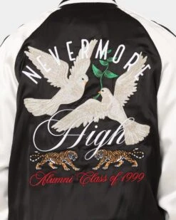 Take it back to the letterman days with the “Alumni” Souvenir Jacket from Lifted Anchors. Giving mad retro vibes, this piece is a standout in every wardrobe. Decked out in embroidered graphics, with contrast sleeves and zip-front closure, this jacket is a fire look and a must-have for this season. Cop yours today!