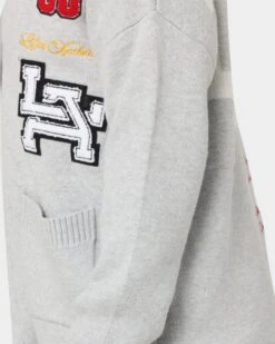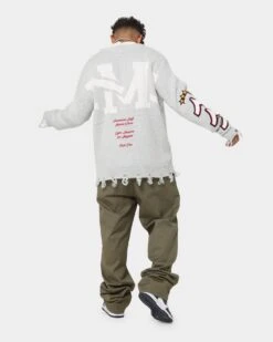 Throw it back to some serious 90s vibes with the “Honors” Cardigan from Lifted Anchors. A classic knit cardigan decked out in embroidered appliqué patches and embroidered brand graphics for a bold, eye-catching look. With dropped shoulders and raw edges at the hem for an iconic streetwear edge. Cop yours today and level up your ‘fits!