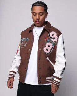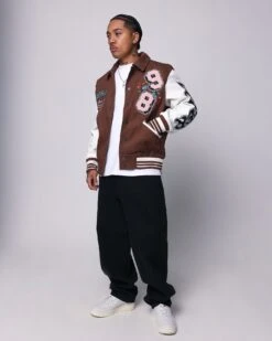The Flaws Varsity Jacket stays true to that retro-style varsity jacket form. Featuring contrast PU leather sleeves and ribbed trims for added comfort. Premium chenille appliques all-over finish the look. When you’re layering up, you’ll want to grab this every time.