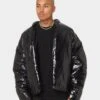 – Material: 100% Cotton Body/100% PU Leather Sleeves