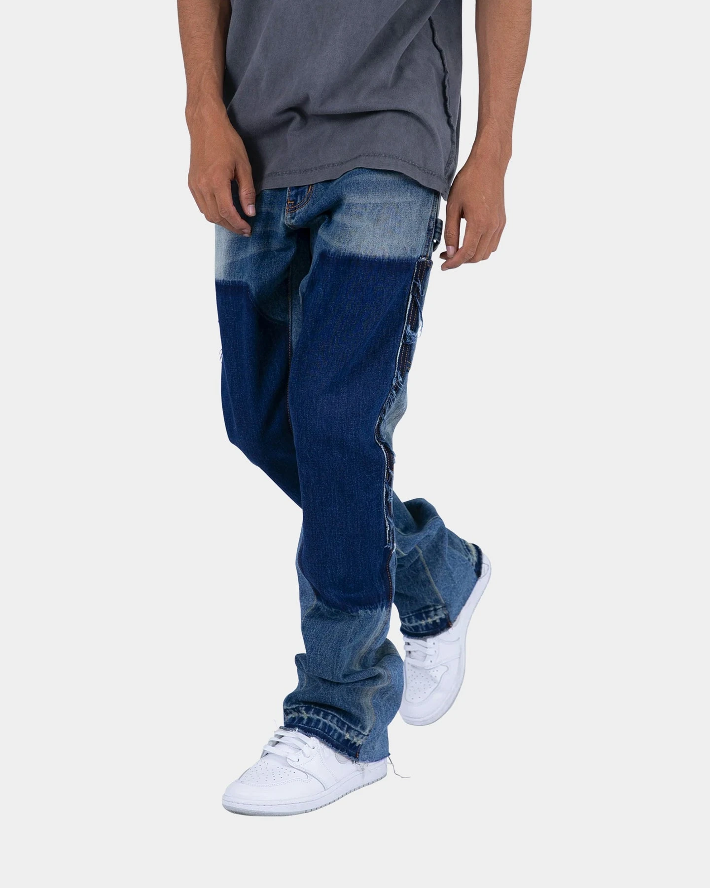 – Contrasting washed denim panels