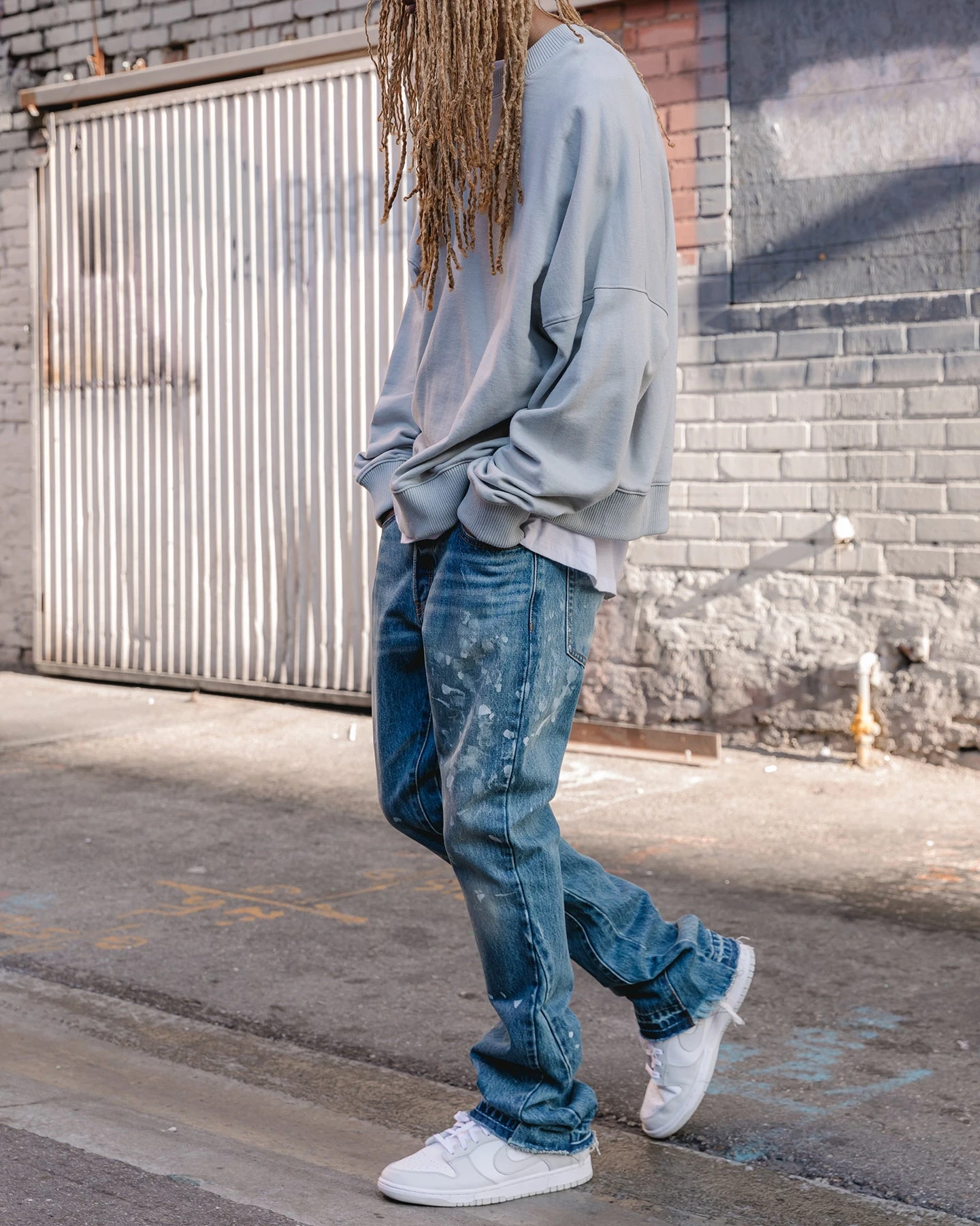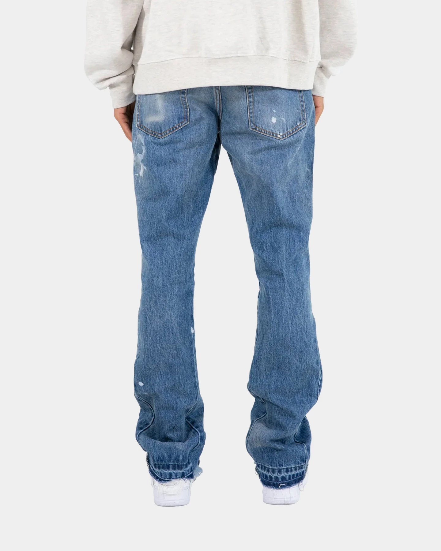 The B400 Flare Denim Jeans are your ticket to staying on top of the trends. The original design features all-over paint details throughout with a washed colourway for a vintage look and feel. The boldness carries into the cut of these pants with the flared fit and premium denim.