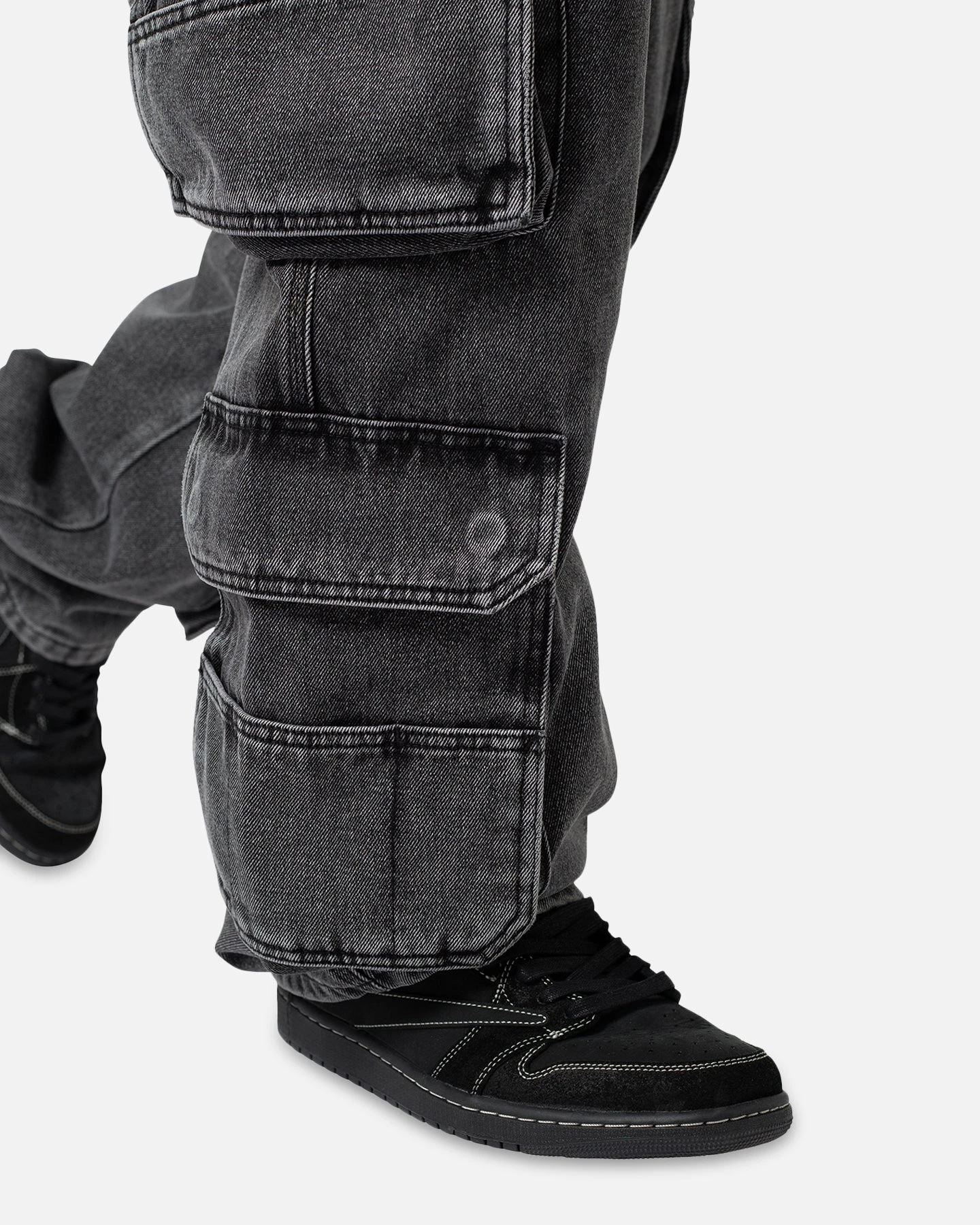 MNML Baggy Rave Cargo Denim Jeans Washed Black