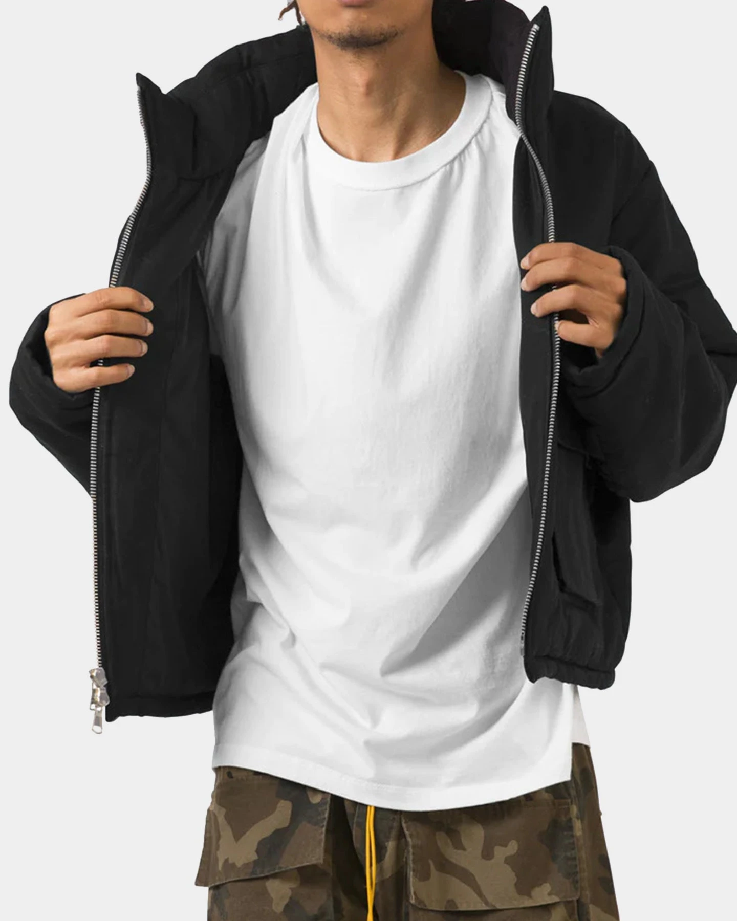 MNML knows how to do different and the Cropped Puffer Jacket is proof of that. The minimal style features dual front cargo pockets with a high neck and 2-way full-zip closure to keep it toasty and personalise your style MNML always has your back- Designed to last, this jacket is made with heavyweight cotton and a buttery-soft inner lining for your comfort.
