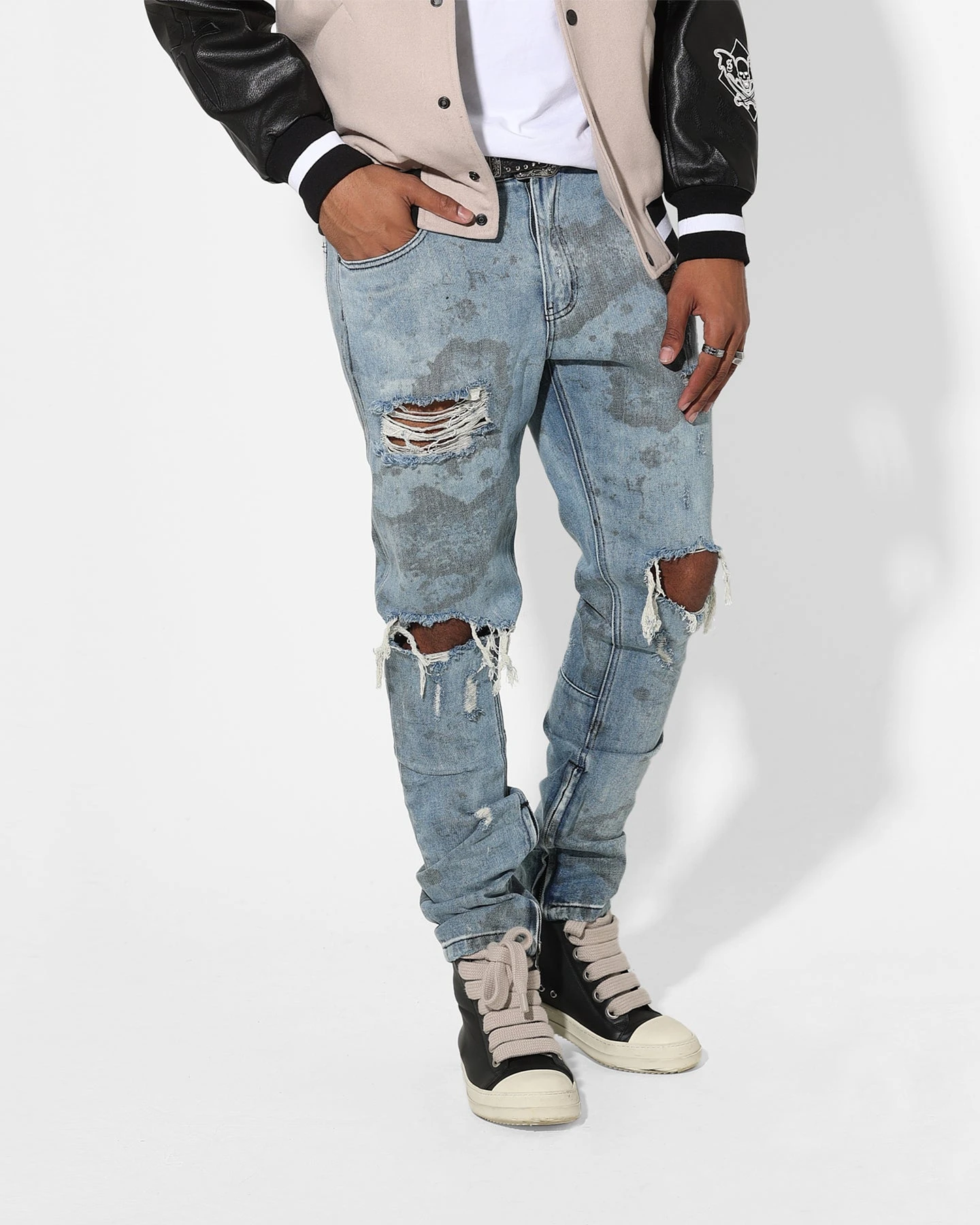 Make your statement in the Acid Destroyer Jeans from Saint Morta. Heavy rips and distressing pair with acid-washed fabric for a textured look. The slim leg can be adjusted with the zippered cuffs. Grab your pair today.