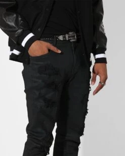 Tear it up in the Furious Skinny Jeans from Saint Morta. The heavily distressed denim will give you a hard look which is sure to give you a elevate your street style. Also featuring a skinny fit, coin pocket, and Saint Morta branding in the form of a leather logo patch on the rear waistband and an embroidered logo on the back pocket.
