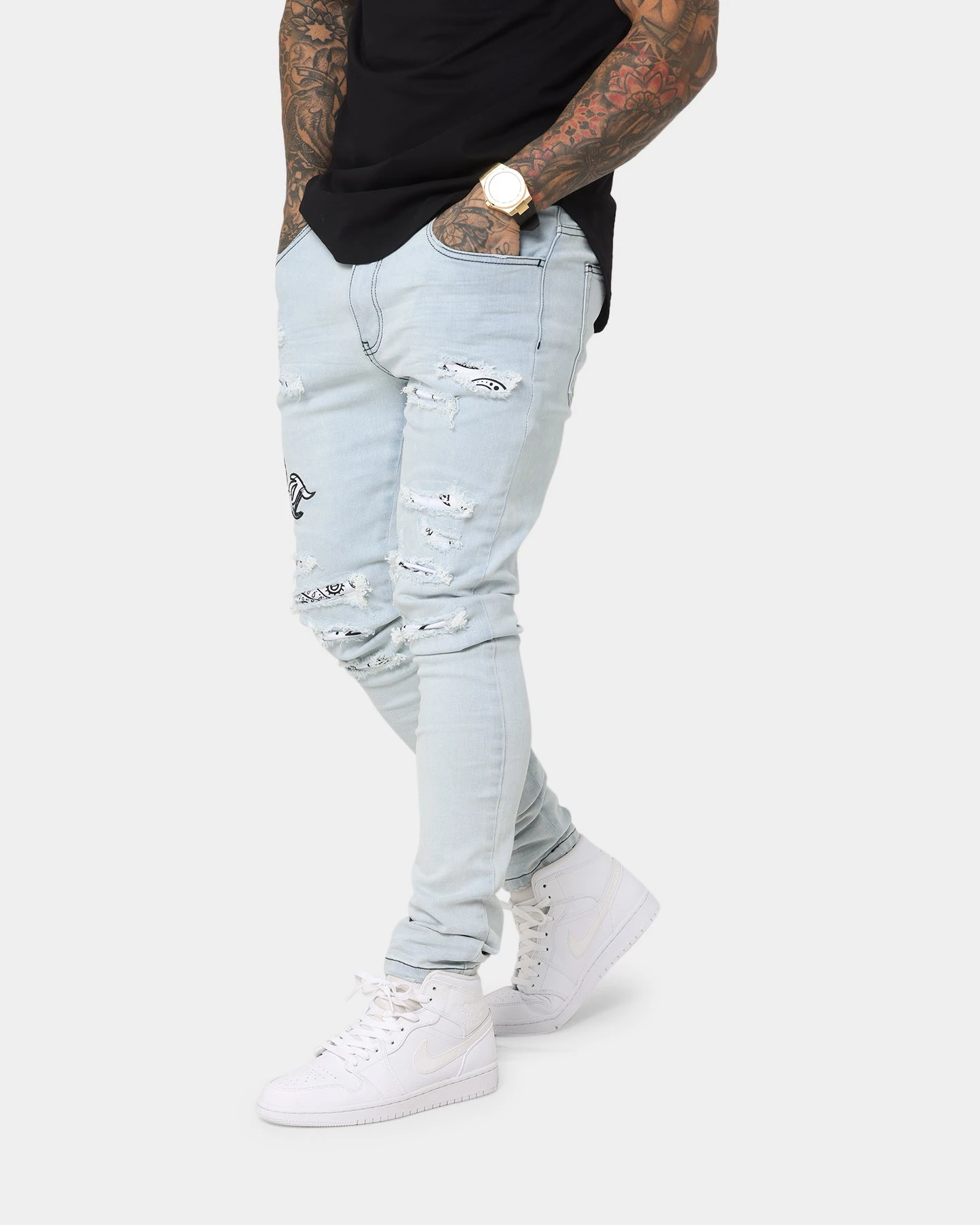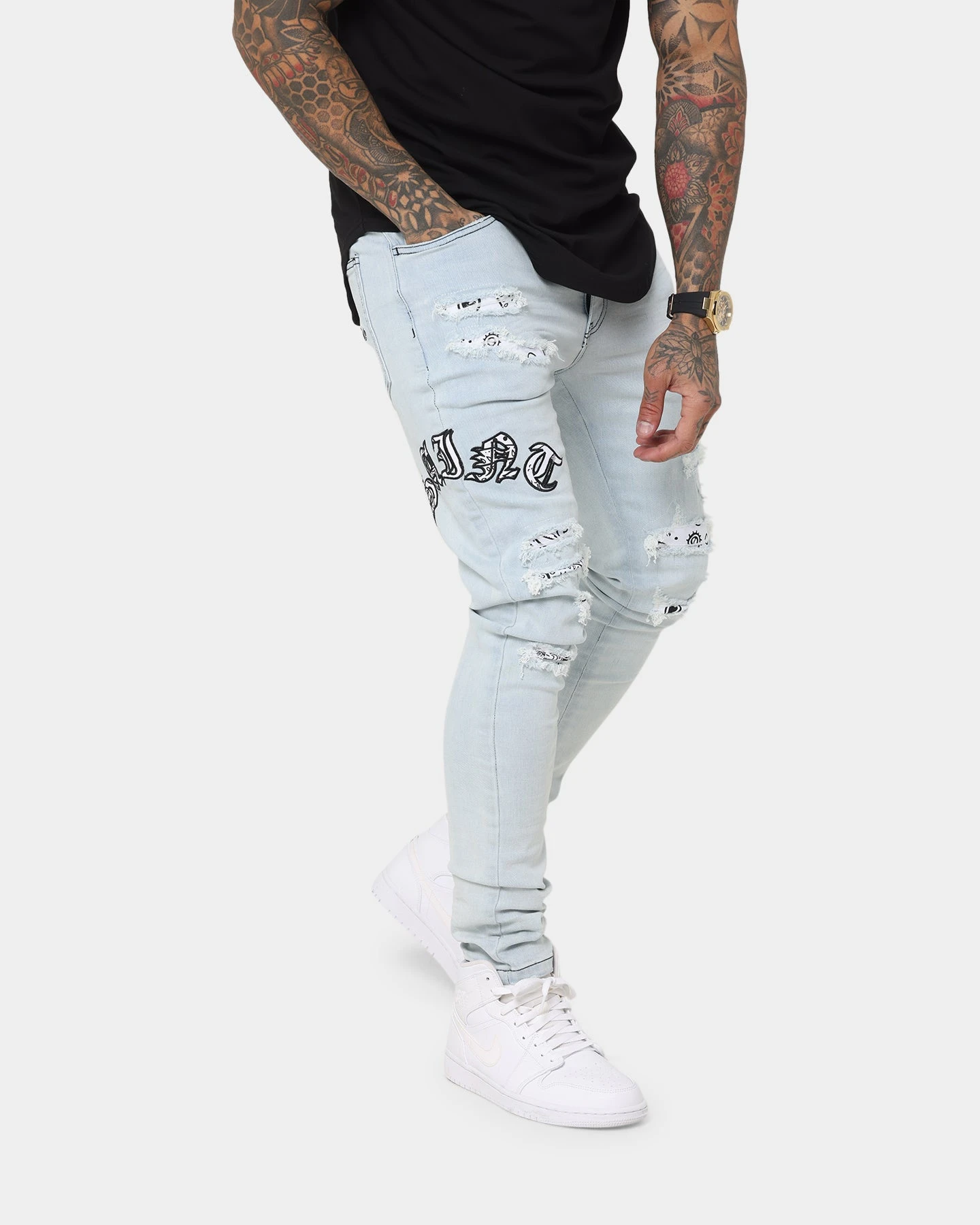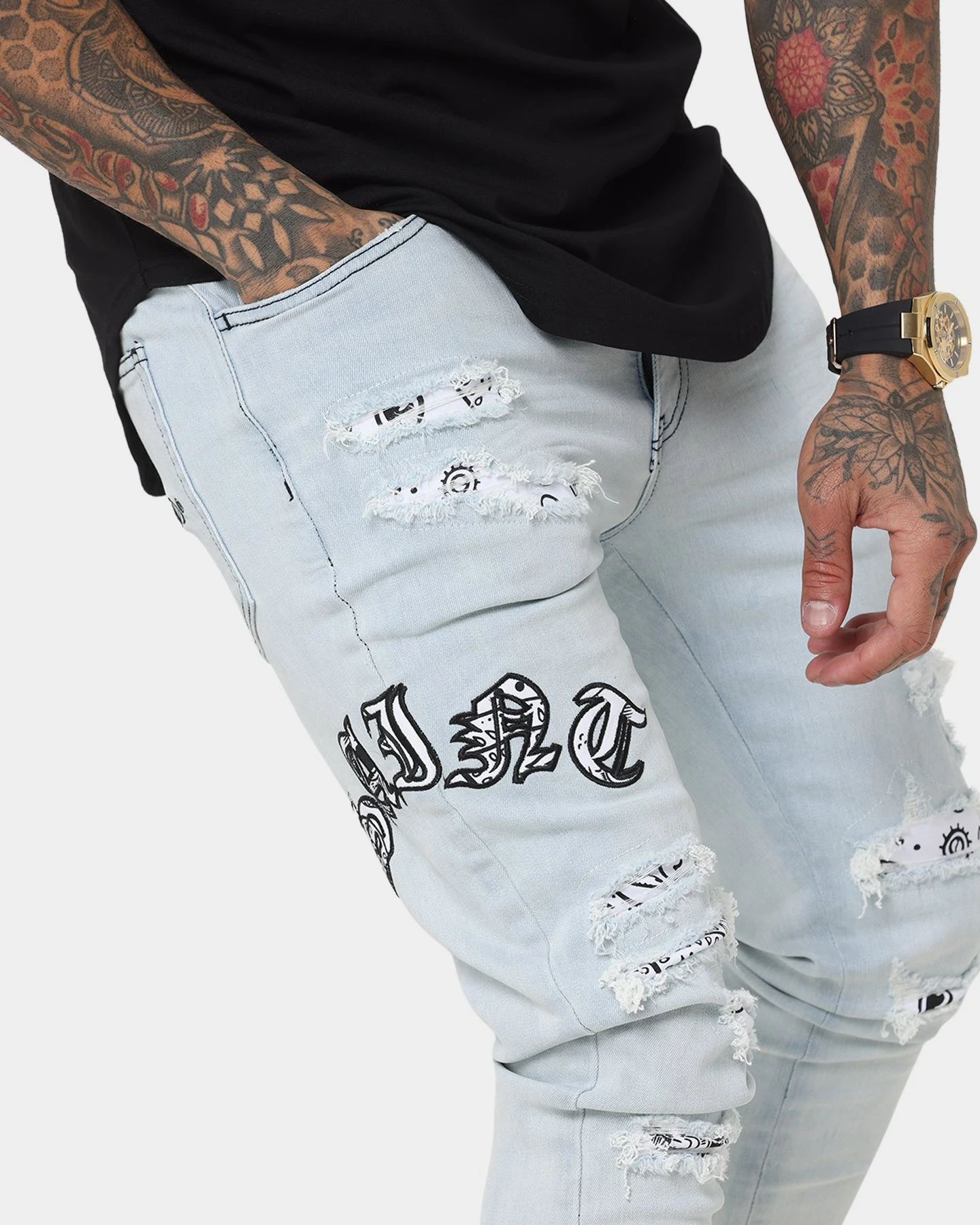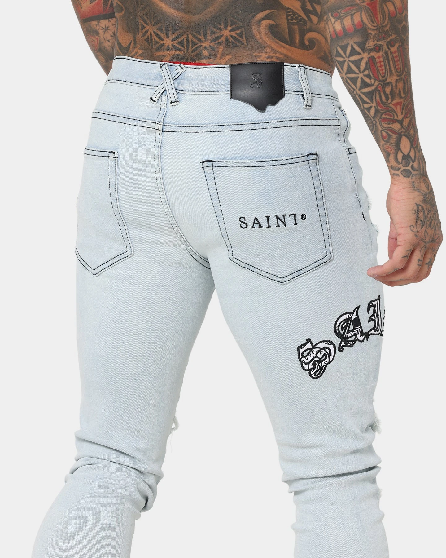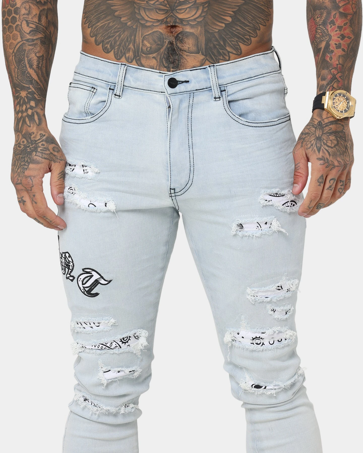Add a bit of paisley to your denims with the Gothic Summer Jeans. Paisley features underneath the heavy distressing and on the appliqués for a fresh look to your denims.