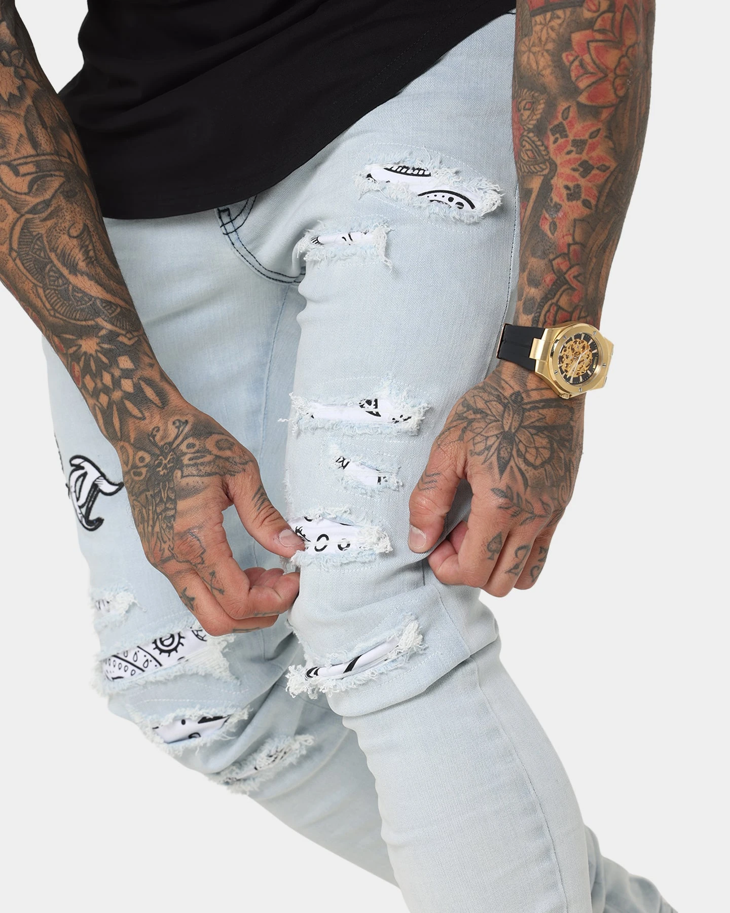 – Distressing with paisley print underneath