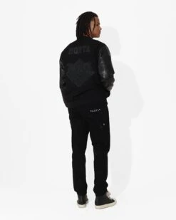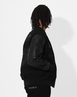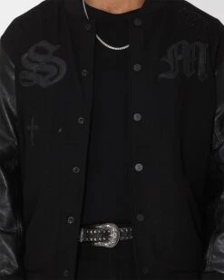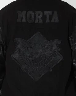 Saint Morta is back and ready to go HARD no matter the season. With all your elevated streetwear essentials, make sure to add the Graveyard Varsity Jacket to your wardrobe. Bringing the retro vibes, this jacket is next level with leather sleeves and embroidered appliqués for a fire look. Ribbed trims lock in the warmth and make this a must-have. Cop yours today!