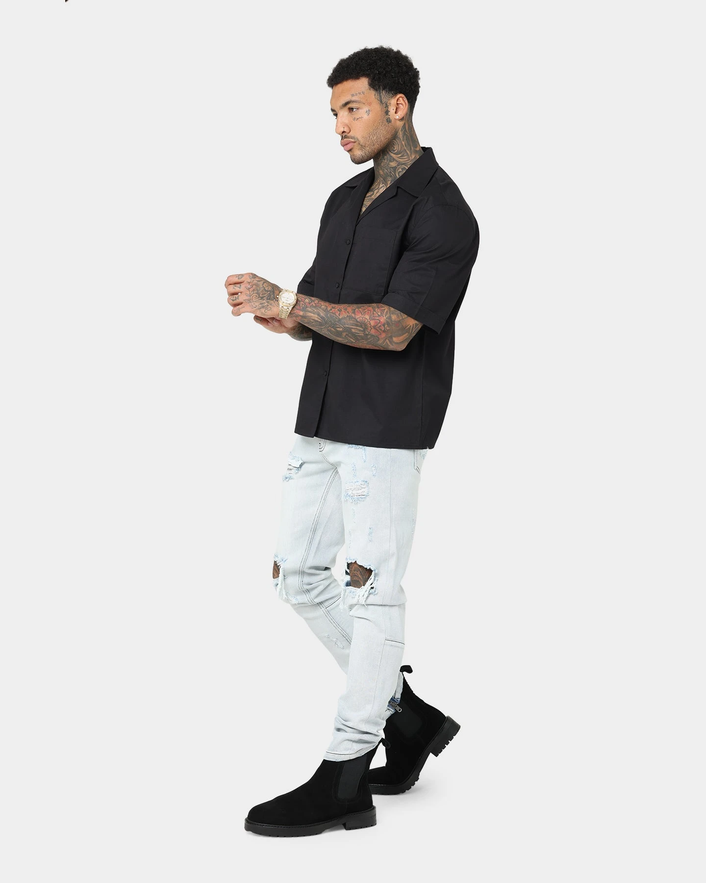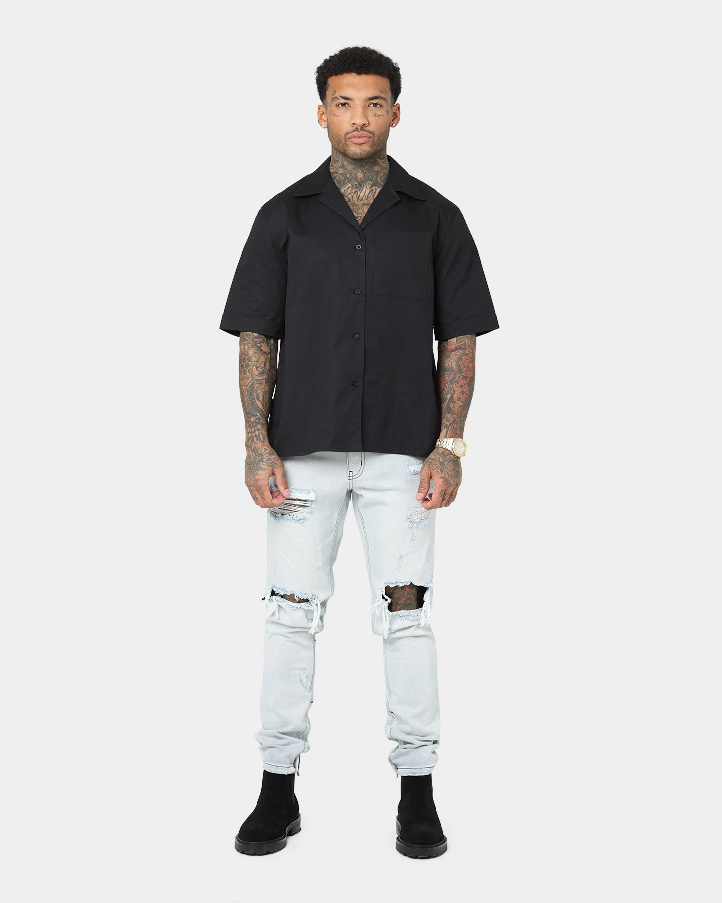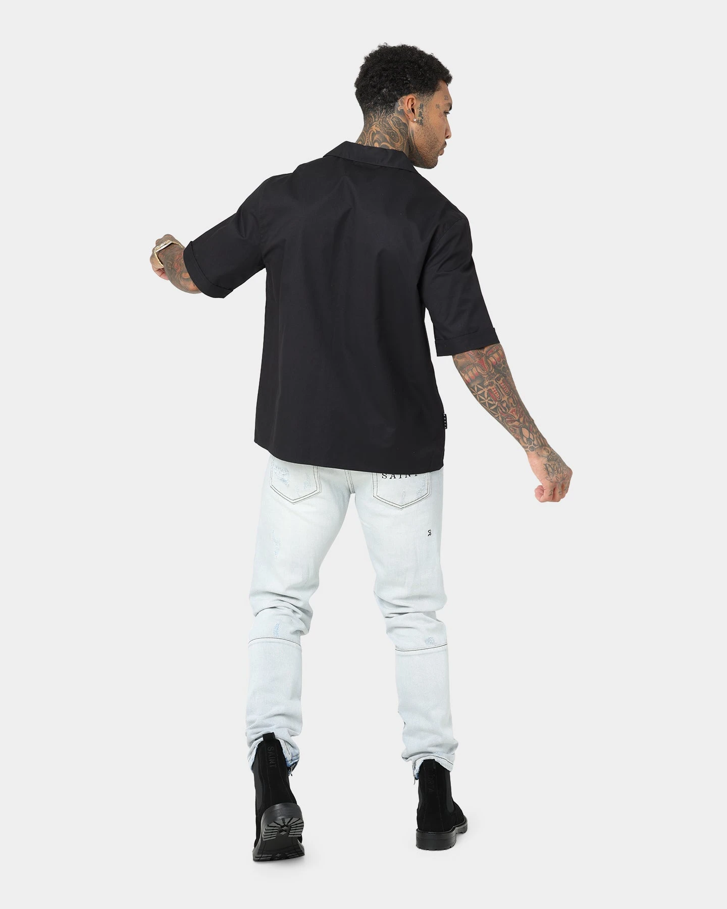 Step out with some retro vibes from Saint Morta with the Kingpin Bowling Shirt. Featuring an oversized chest pocket, collar, and button-front closure for the ultimate vintage look. This tee is made to last with twin needle stitching to ensure it can take whatever you bowl at it. Cop yours today!