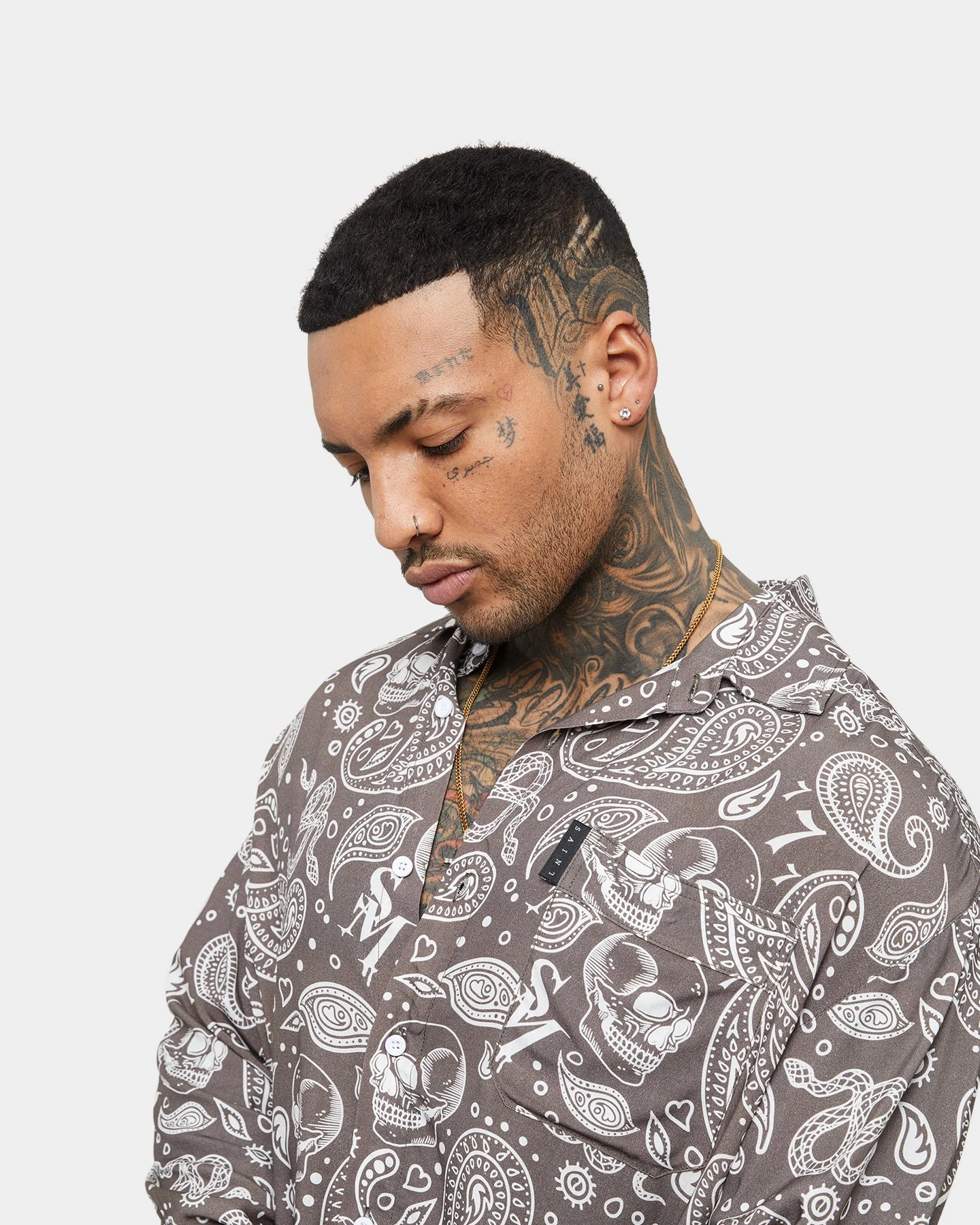 The Paisley Skulls Long Sleeve Button Up Shirt seamlessly blends a sick paisley print, fold-over collar, and button-up front to create the ultimate shirt. This button-up shirt is the perfect piece for a day or night event, cop yours today!
