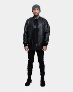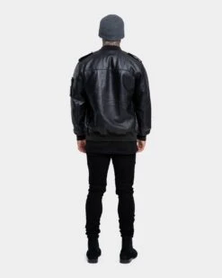 Combine the two ultimates of leather and a bomber style for a statement piece. Made from leather and featuring stud, epaulettes and sleeve pocket detailing, this premium jacket is one for the ages. Don’t miss out on the Staten Leather Bomber Jacket and secure yours today!