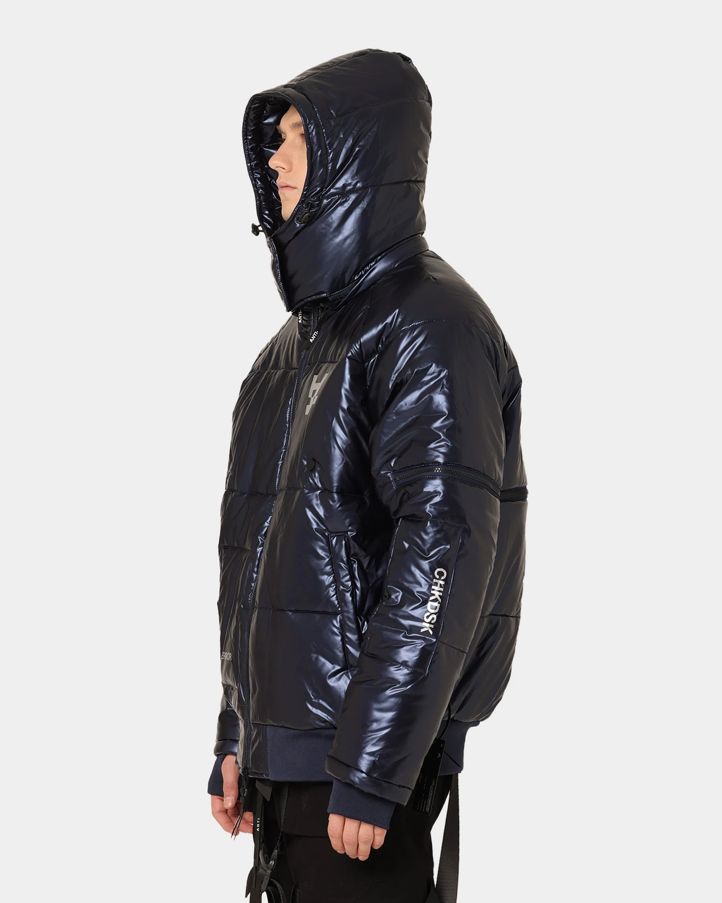 Not your regular puffer jacket, the Anti Joy technical Puffer is made to take up space. The biggest key: unique zip details mean you can personalise the look depending on your fit or how you’re feeling. Subtle details bring this piece to the next level, with reflective 3M prints, an Anti baggage tag, and internal suspender straps all contributing to the greater good.