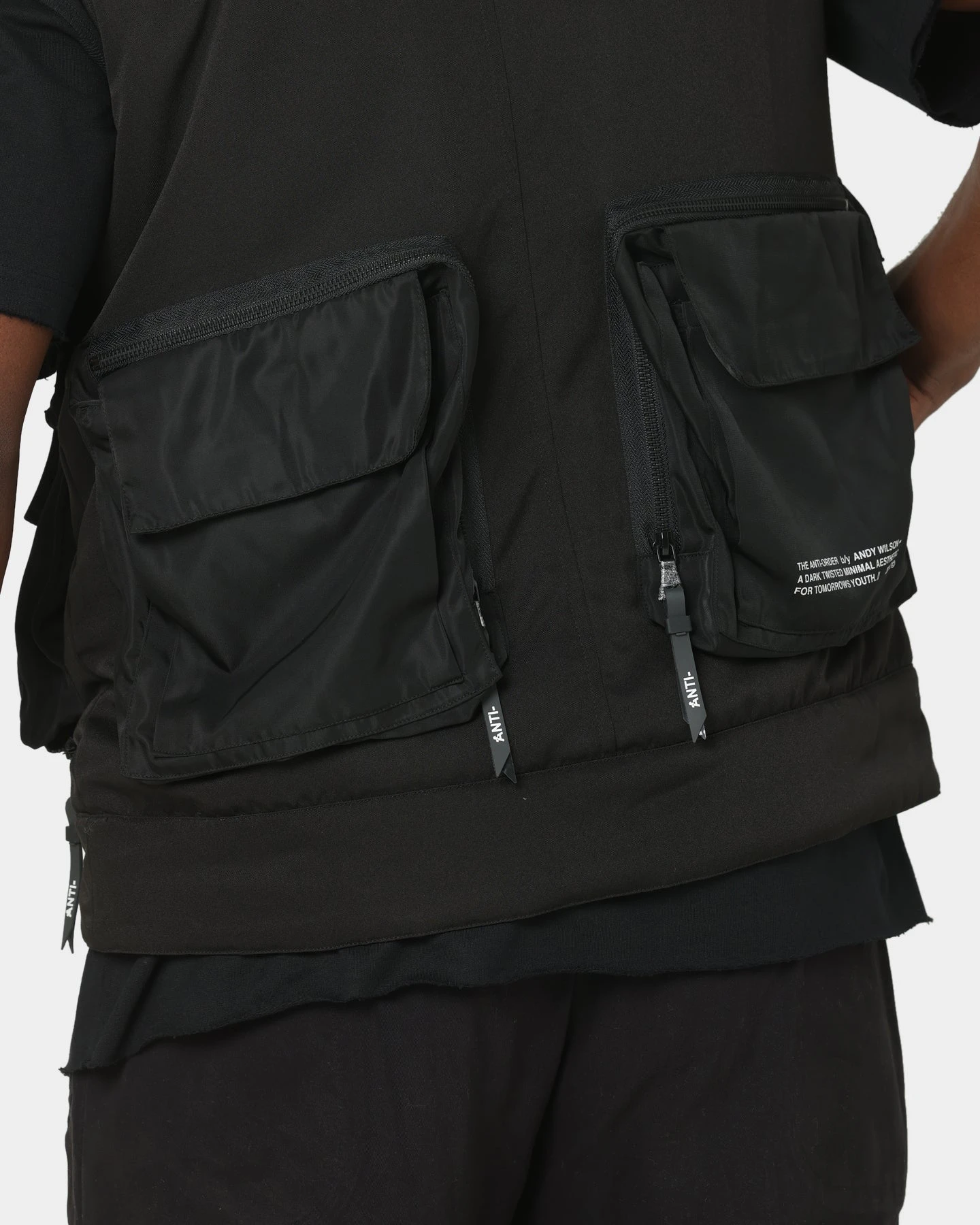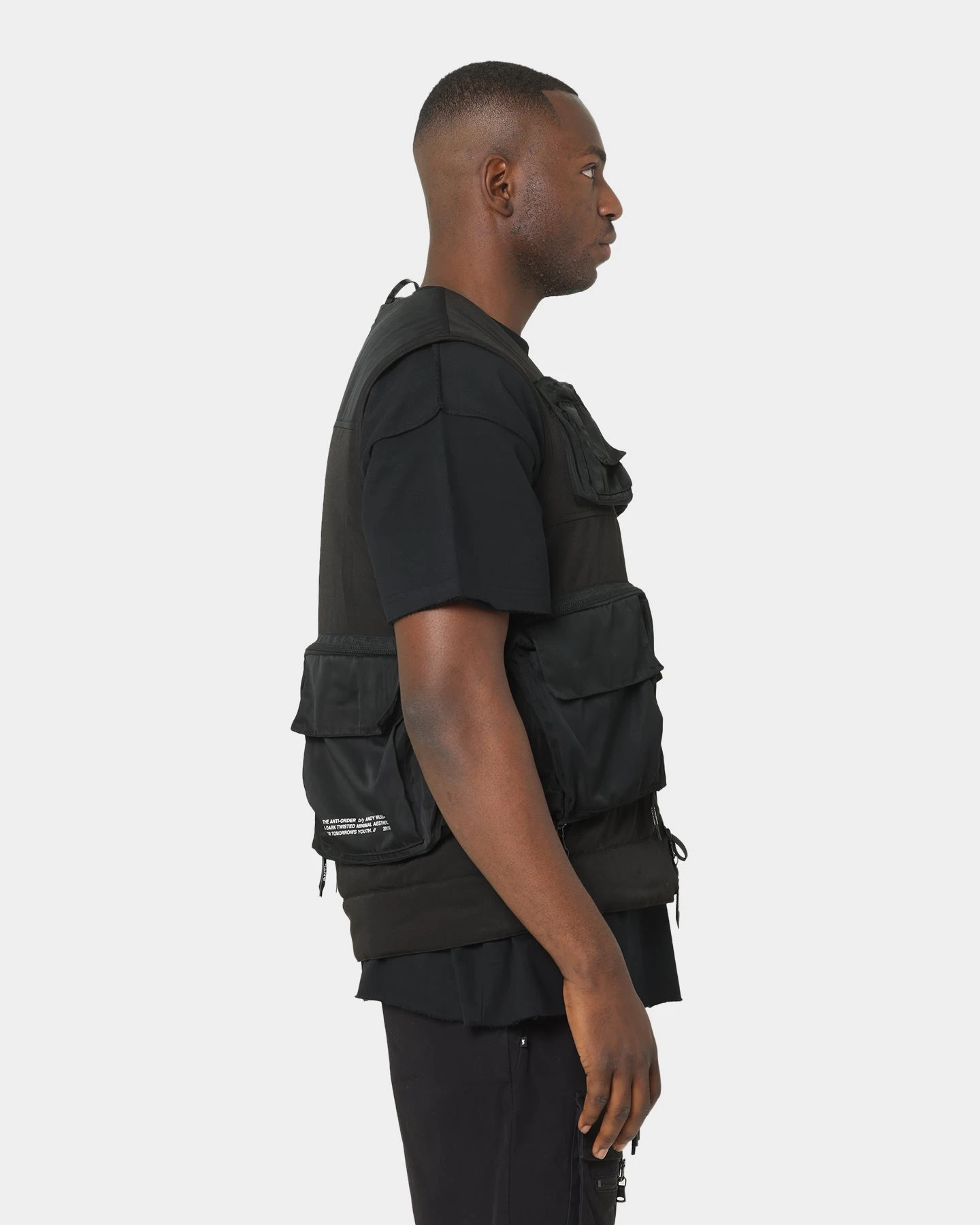With eclectic and ageless garments you can wear to the end, The Anti-Order is the aesthetic of tomorrow. The Non-Military Vest features multiple cargo style pockets all over with custom zippers. This high-quality build also includes signature branding and gives off an androgynous, modern vibe.