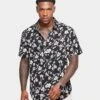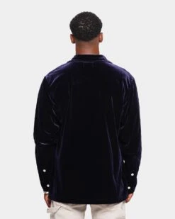 XXIII Uzair Velour Button Up Shirt Dark Navy